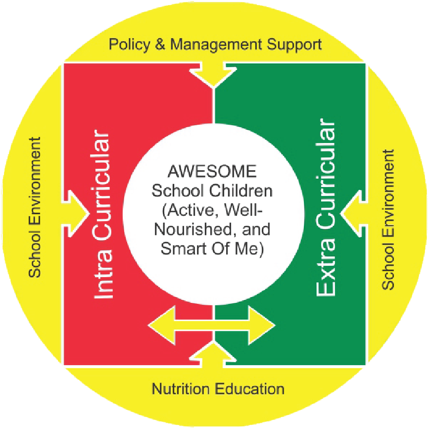Program multisektoral berbasis sekolah yang menekankan peran sekolah sebagai media yang efektif untuk pendidikan pembentukan karakter yang berpusat pada memungkinkan siswa untuk mempelajari praktik gizi yang baik baik di sekolah maupun di rumah